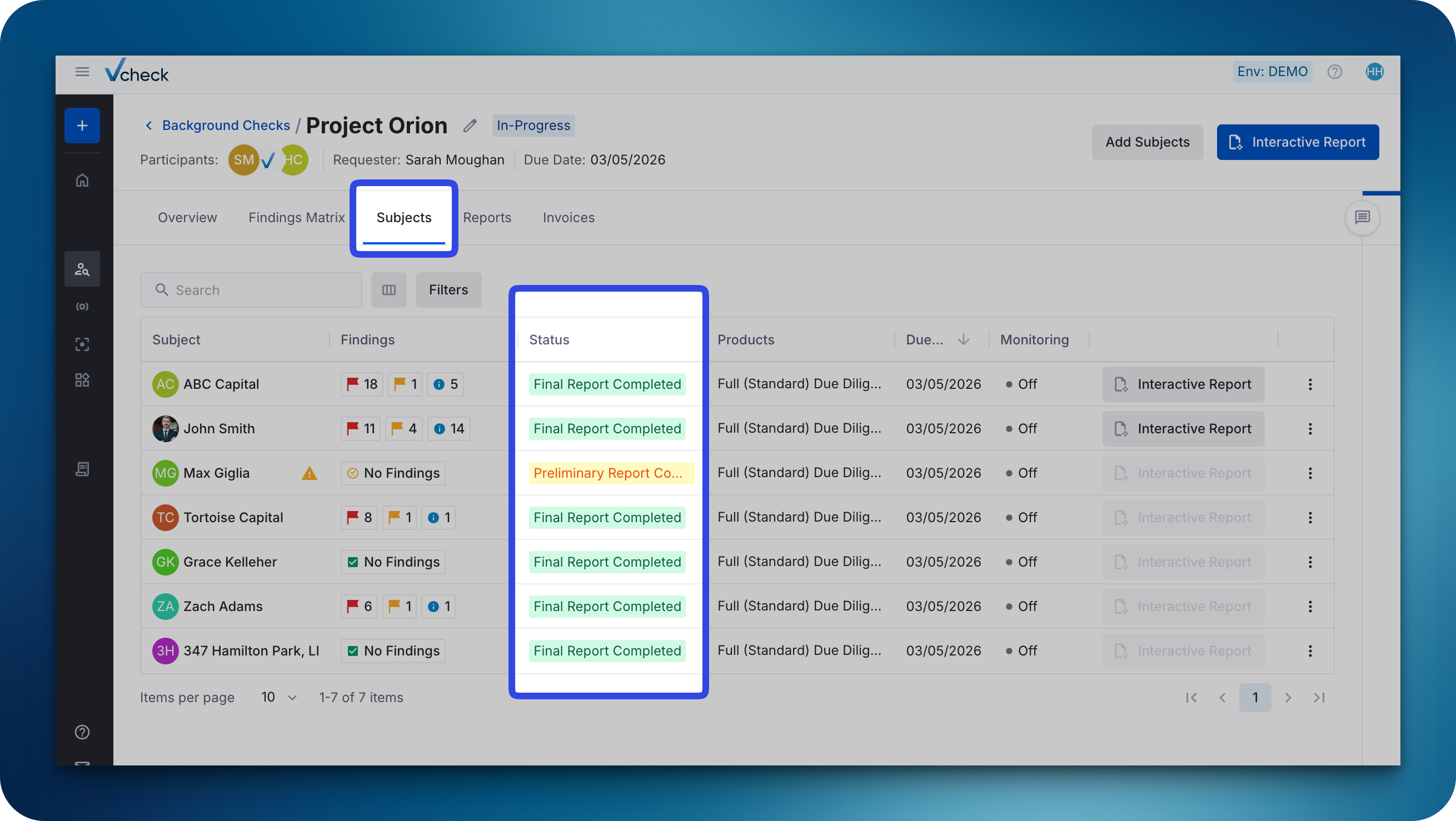 I**mportant Note:** Viewing preliminary findings DOES NOT mean the subject is cleared. Additional records may be returned, and the final, complete status will only be reflected when the entire project is marked as Delivered.